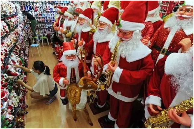 参考消息网1210日报道 美媒称,距上海以南高铁1小时车程的义乌,据称生产全世界近三分之二的圣诞装饰品。义乌是一个内陆城市,人口约120万。根据杭州海关的月度记录,20169月到20178月之间,义乌周边的600余个工厂和作坊,生产了价值30亿美元的圣诞相关产品。